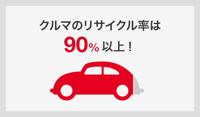 クルマのリサイクル率は90%以上適正な再資源化に取り組んでいます。